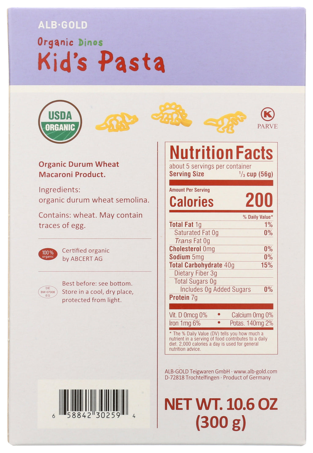 Kid’s pasta made with organic wheat semolina and crafted into dinosaur and other prehistoric animal shapes. Munch on delicious pasta with a Jurassic twist! This pasta is made with highest quality organic wheat semolina in Germany. It is certified organic both in the EU and in the US. To prepare the pasta, just pour the contents into a pot of boiling water and cook it for 8 to 10 minutes.