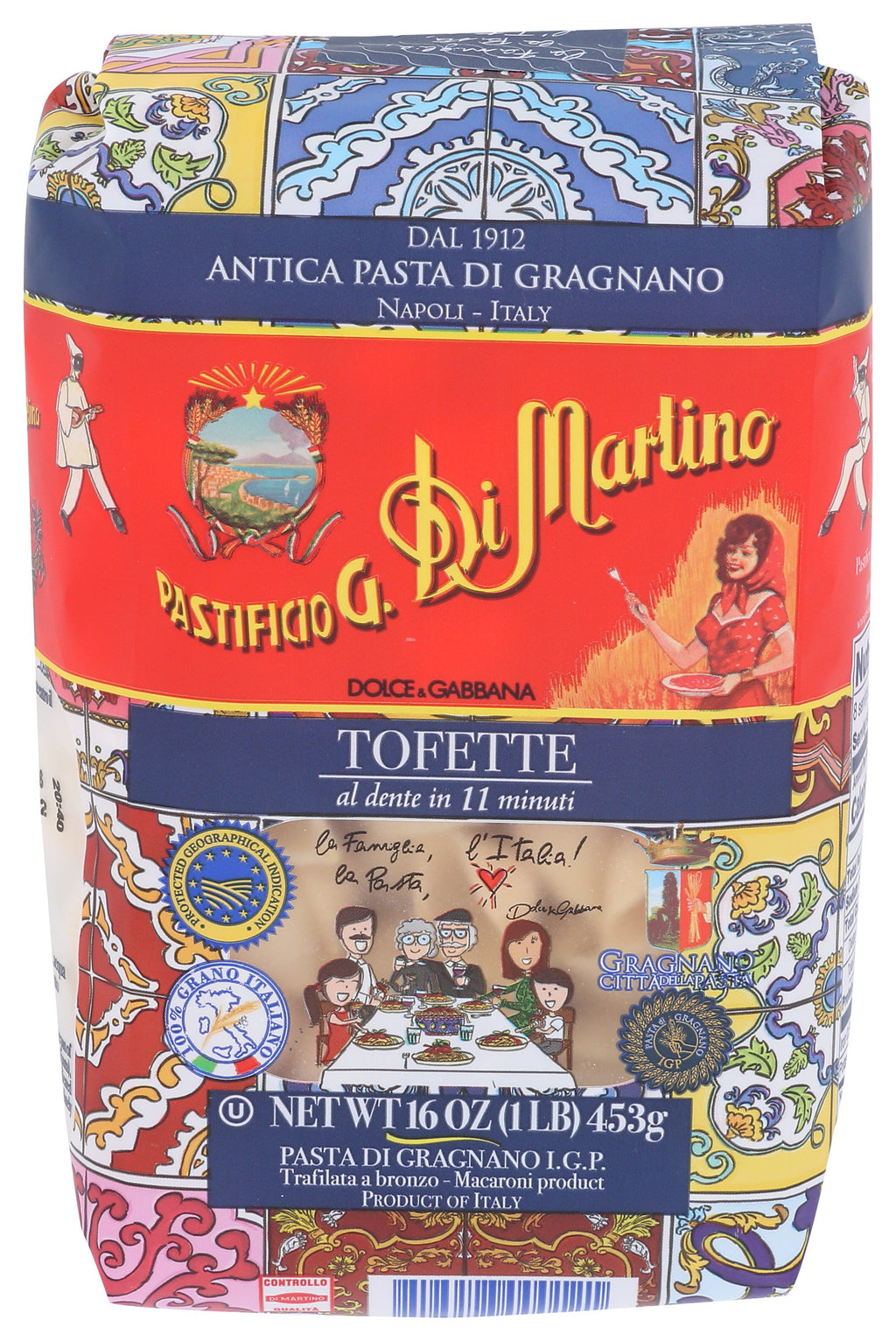 Di Martino Pasta Tofette reminiscent of a small shell and it's perfect for holding sauces whose flavor explodes with each bite. They cook well, easy to digest and taste great when combined with creamy sauces. Our pasta is PGI Certified Gragnano Pasta, bronze-die, slowly dried at low temperatures, made with 100% Italian durum wheat semolina and local spring water.