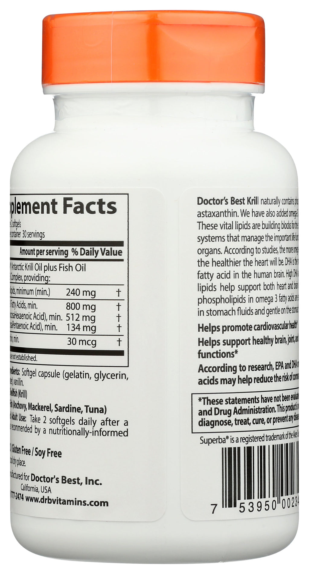 Doctor's Best Enhanced Krill with DHA and EPA is an innovative dietary supplement specifically formulated to promote optimal brain, joint, heart health. The unique formula contains premium Antarctic krill oil combined with high potency fish omega-3 fatty acids - exclusive components that can boost cell membrane building blocks while also delivering vital nutrients such as EPA and DHA triglycerides from sustainably harvested sources.