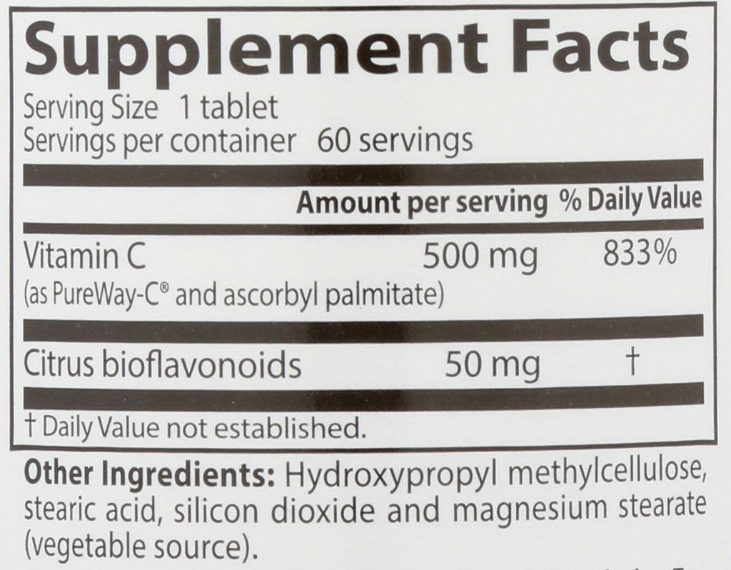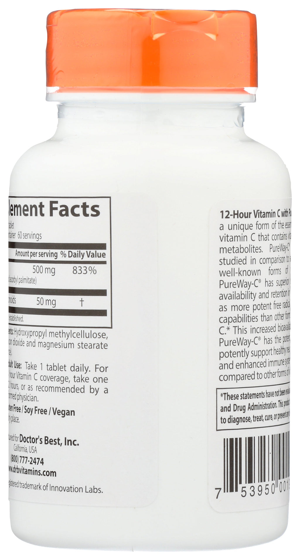 Doctor's Best 12-hour vitamin C dietary supplement is formulated to promote healthy immune system activity while supporting proper neuron function. Designed with pure way-C, this supplement uses a bioavailable formula that may provide better uptake and potency compared to other forms of vitamin C. For the best results, take one tablet daily or one tablet every 12 hours for 24-hour coverage.