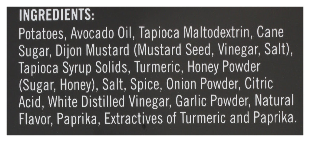 A perfect blend of honey and Dijon mustard. Creamy with a hint of tanginess. It's a flavor experience like no other. Don't believe us? Give it a try! We use only the best potatoes, cooked in small batches using avocado oil and only the finest and most natural ingredients for a distinctively intriguing taste experience. Nothing artificial. All Potato.