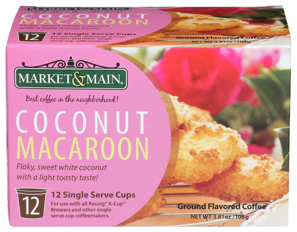 Market & Main is roasted to perfection, packaged immediately to ensure freshness and backed by our 100% unconditional guarantee. All you have to do is invite your friends! Best coffee in the neighborhood! Flaky, sweet white coconut with a light toasty taste! For use with all Keurig K-cup brewers and other single serve cup coffeemakers. Ground flavored coffee.