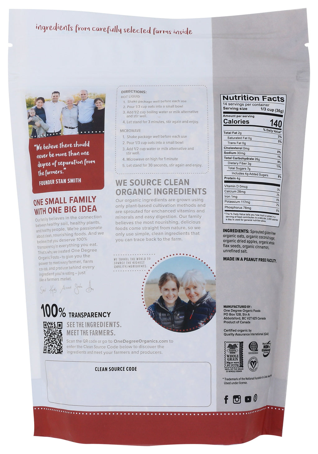 Rich-tasting and tender, our rolled oats bring classic oatmeal texture to recipes where oats are the star of the show. Like all our oats at One Degree, our organic, non-GMO rolled oats are family-farm grown and sprouted so you get more nutrients in every easy to digest bite. Free of gluten and glyphosate.
