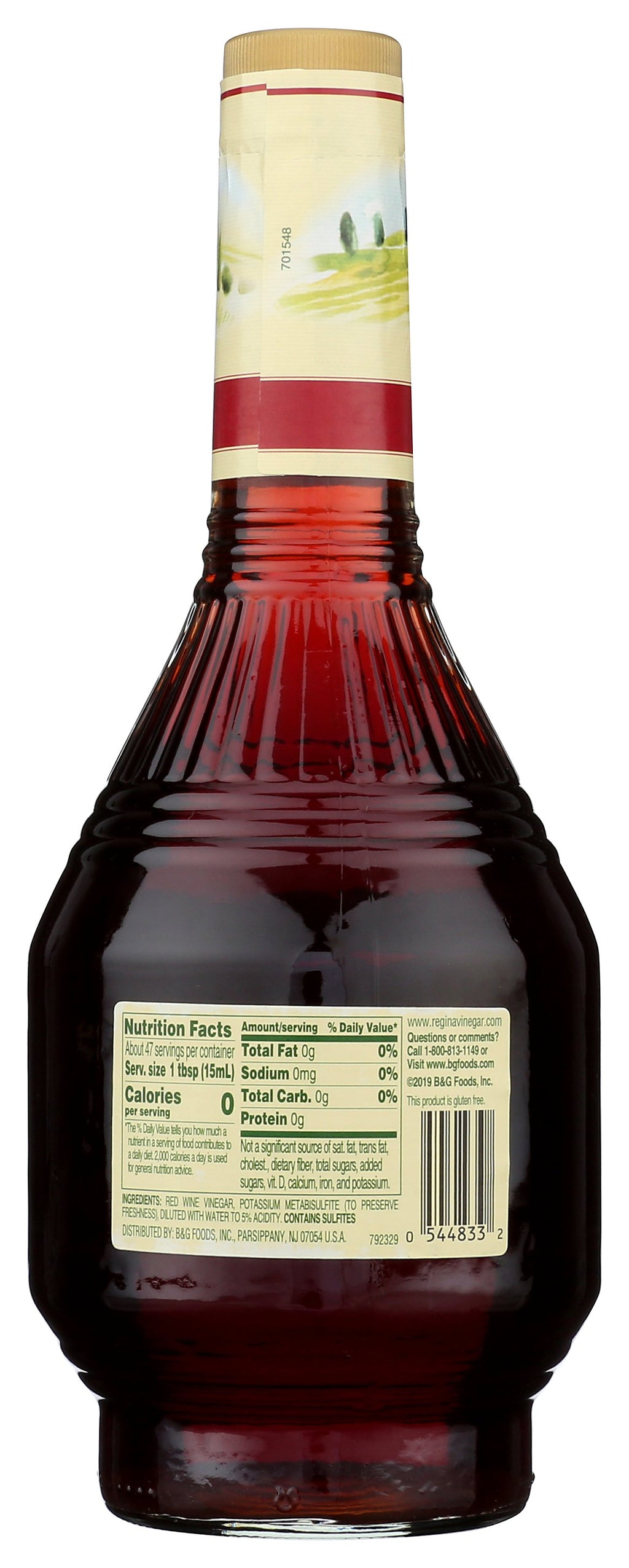 Ruby red, full-bodied and aromatic, Regina is the perfect choice for dressings and marinades. Regina to sets the standard for fine wine vinegars. Can also be used to heighten the flavor of soups, sautés and sauces. Recognized as a world standard, Regina Red Wine Vinegar is crafted with an ideal blend of sharpness and flavor. Certified Gluten Free.