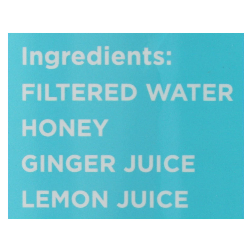 Discover the soothing qualities of a refreshing and natural drink that promises to keep you balanced throughout your day. This delightful beverage, available in a convenient 32 fl. oz. bottle, is crafted with a harmonious blend of filtered water, honey, ginger juice, and lemon juice. Enjoy its versatility as it can be served both hot or cold, making it perfect for any season.