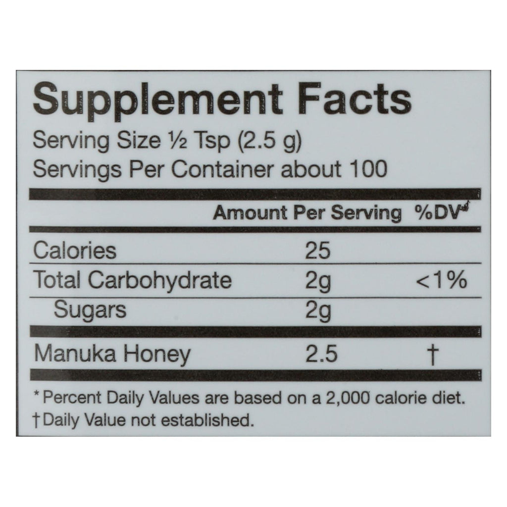 Discover the rich, velvety texture of premium manuka honey in every spoonful. This Manuka Honey Prem Gold 8+, sourced from the pristine landscapes of the United States, offers a natural sweetness that pairs perfectly with tea, toast, or in your favorite recipes. Certified GMO-free and kosher, this honey is a wholesome choice for those who value quality and purity.