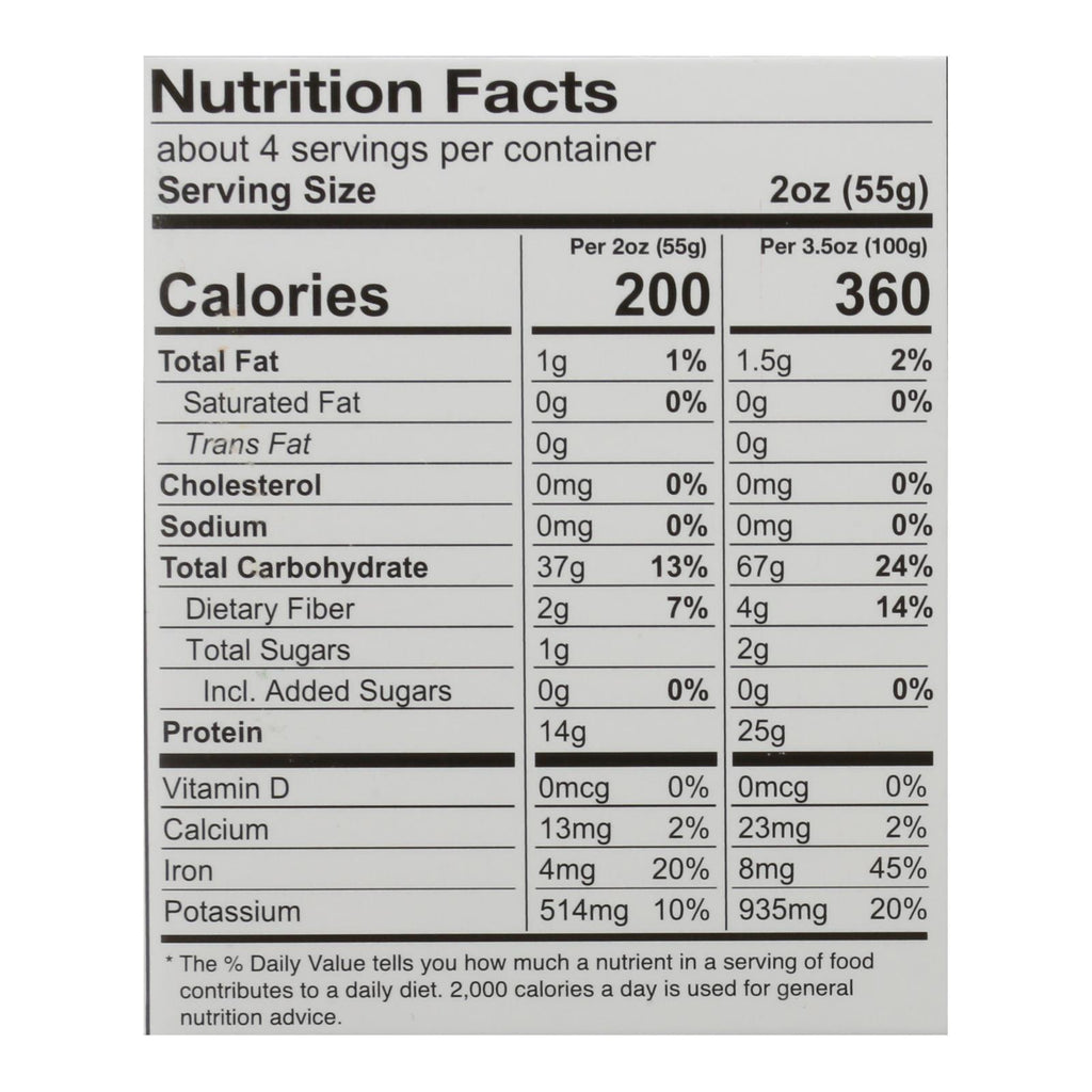 - 14g of protein and 7g of dietary fiber per serving