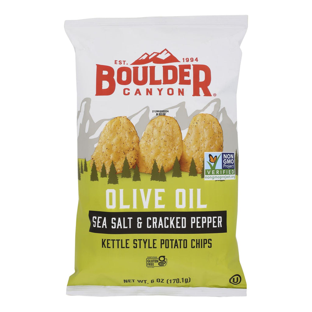Indulge in the delightful crunch of kettle-cooked potato chips, crafted with the finest American-grown potatoes and cooked to crispy perfection. These chips are seasoned with a savory blend of sea salt and cracked black pepper, creating a flavor profile that is both classic and satisfying. Cooked in 100% pure olive oil, each bite promises a rich, aromatic experience.