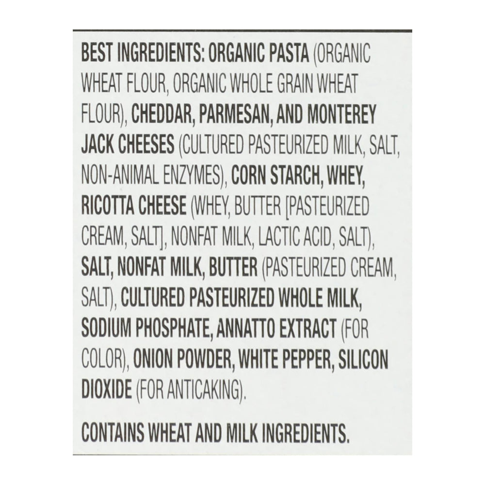 Enjoy a delightful meal with this delicious mini penne pasta dish, crafted with a rich blend of four real cheeses. This macaroni and cheese is made with non-GMO organic wheat, ensuring a wholesome experience without artificial flavors or preservatives. Each serving provides 240 calories and 9 grams of protein, making it a satisfying choice for any meal.