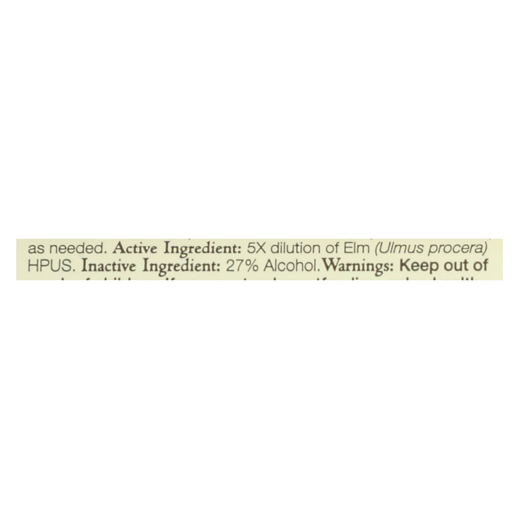 - Active Ingredient: 5x dilution of Elm (Ulmus procera) HPUS