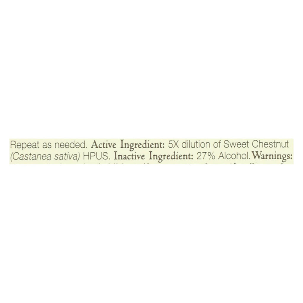 Discover the soothing benefits of nature with this homeopathic supplement designed to relieve nervous tension and promote a sense of optimism. Crafted with a 5x dilution of sweet chestnut, this natural remedy ensures consistent potency and efficacy in every drop. The formulation includes 27% alcohol for preservation and purity. Conveniently packaged in a 0.7 fl. oz. translucent brown bottle, it offers a long-lasting supply for your wellness needs.