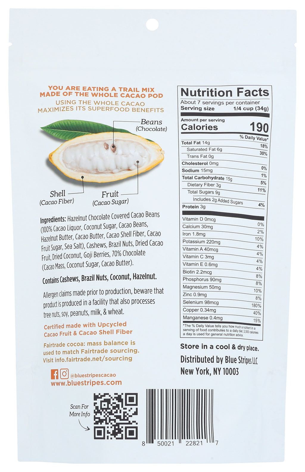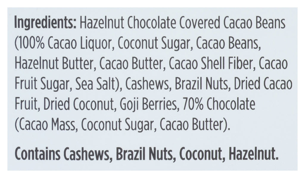 Your daily cacao boost in a bag with cacao fruit, chocolate covered whole cacao beans and dark chocolate chips. This is not your typical daily cacao boost as it's also made with cashews, and toasted coconut. Non GMO, certified vegan, and also rich in minerals! You need to store in a cool and dry place as well.