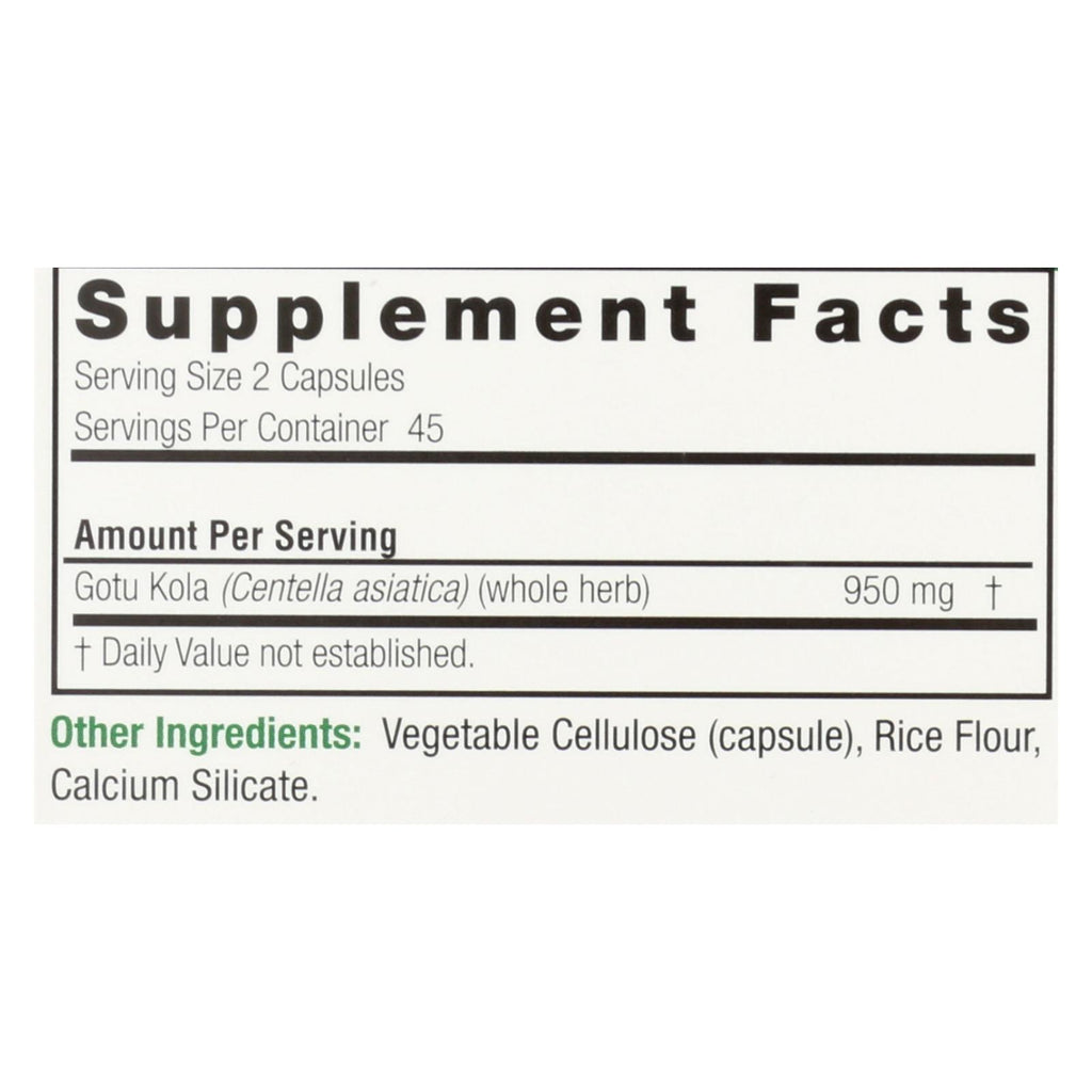 - Contains 950 mg of Gotu-kola per capsule, in a convenient 90-cap bottle.