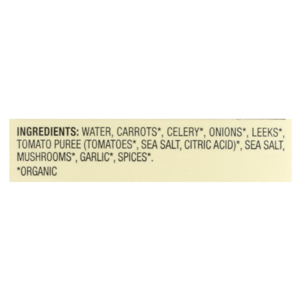 Savor the wholesome taste of garden-fresh ingredients with this organic, vegan, and gluten-free vegetable broth. Perfect as a base for soups, stews, and more, it features a delightful blend of savory leeks, onions, and garlic, complemented by carrots, celery, and vine-ripened tomatoes. This fat-free broth provides a nutritious start to countless culinary creations.