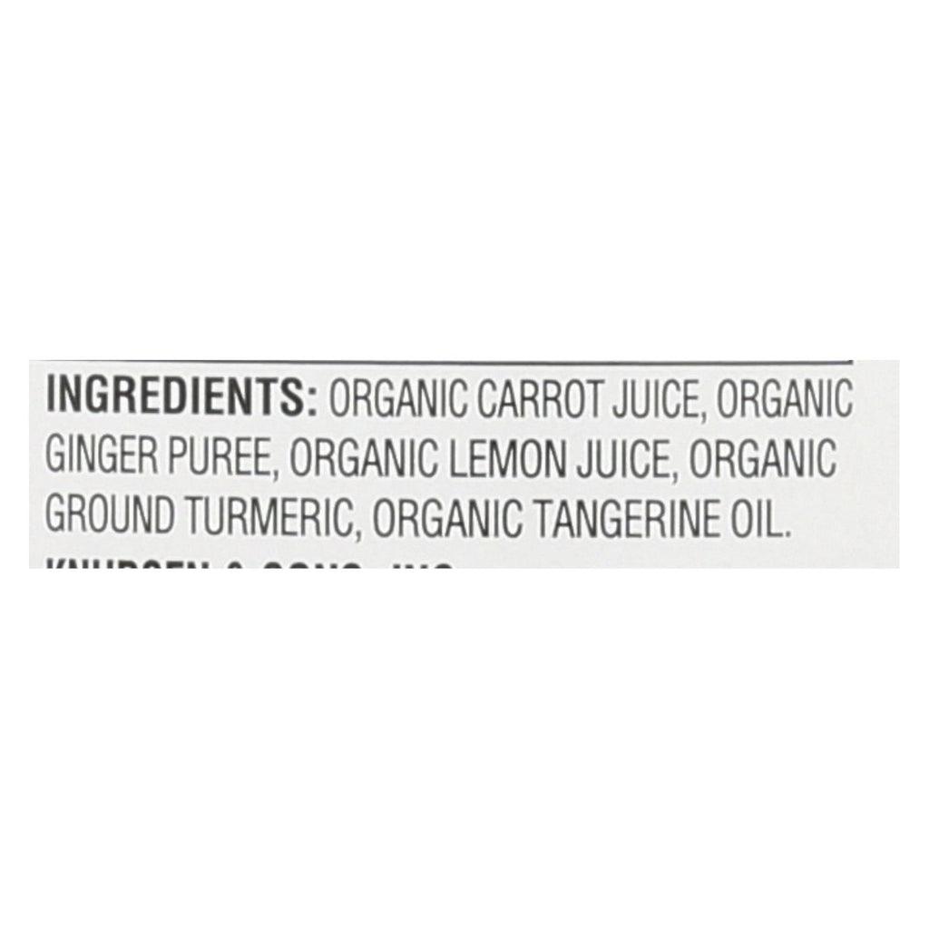 WITH R.W. KNUDSEN ORGANIC JUICE, CARROT GINGER TURMERIC, THE KNUDSEN FAMILY CONTINUES ITS TRADITION OF DELIVERING FRUIT JUICES AND FRUIT AND VEGETABLE PRODUCTS MADE WITH INTEGRITY, CRAFTSMANSHIP AND INNOVATION … A BALANCE WE THINK YOU'LL FIND INTERESTING. EACH BOTTLE OF THE R.W. KNUDSEN ORGANIC JUICE, CARROT GINGER TURMERIC, CONTAINS 32 FL. OZ. OF A ZINGY ORGANIC CARROT, GINGER AND TURMERIC BEVERAGE. PASTEURIZED FOR YOUR SAFETY, WITHOUT ARTIFICIAL FLAVORS OR PRESERVATIVES, CERTIFIED ORGANIC AND VERIFIED NON-GMO, MAKE SURE TO REFRIGERATE AFTER OPENING. PLEASE SEE NUTRITION FACTS PANEL FOR ALLERGENS.