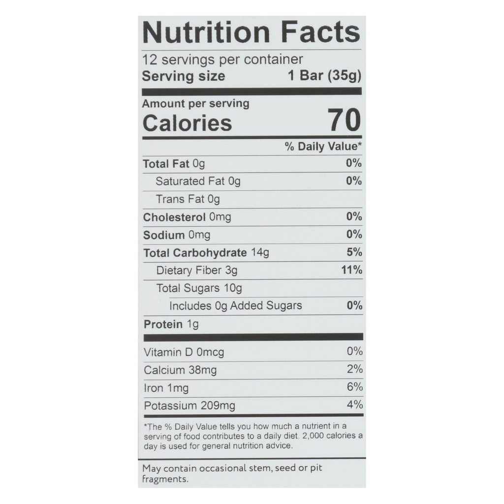 Savor the delicious simplicity of a wholesome snack that combines the natural sweetness of apples and organic figs. Each bar is a perfect choice for those who care about what they eat, as it is made with just two ingredients and packed in a convenient 1.2 oz size. This case of 12 bars offers a nutritious, grab-and-go option that is ideal for busy lifestyles.