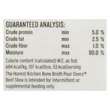 Delight your canine companion with a meal that is both nutritious and delicious. This gourmet beef stew is crafted with high-quality ingredients sourced from the United States, ensuring a wholesome dining experience for your dog. Made with GMO-free components, each 5.5 oz serving combines beef bone broth, succulent beef, and a medley of carrots, butternut squash, and aromatic herbs like thyme and sage.