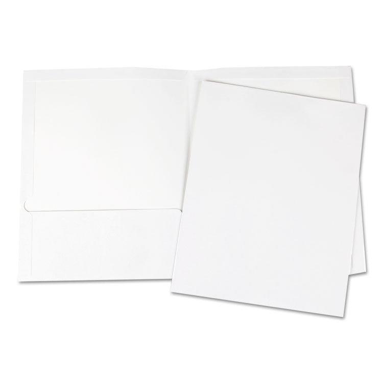Elevate your organization game with these versatile two-pocket portfolios, designed to meet your storage and presentation needs. Crafted from durable laminated cardboard paper, each folder provides a sturdy yet stylish solution for carrying documents. With a generous 100-sheet capacity, these portfolios are perfect for both professional and educational environments. Measuring 11 x 8.5 inches, they fit standard letter-sized documents snugly and come in a sleek white finish, adding a touch of elegance to your paperwork. Each box contains 25 portfolios, ensuring you have ample supply for any project or presentation.