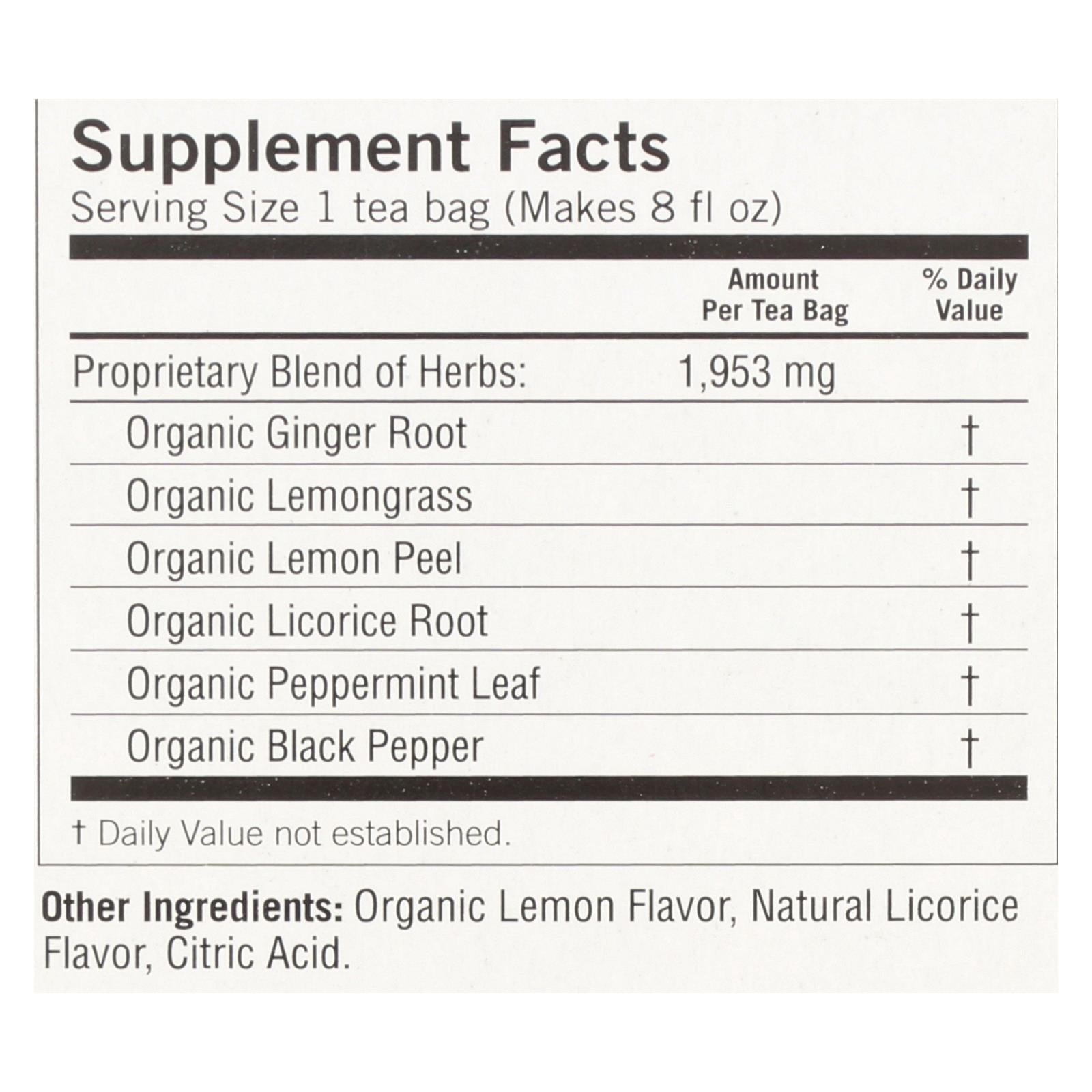 This delightful herbal tea blend brings together the invigorating zest of lemon with the soothing warmth of ginger, making it a perfect choice for a comforting beverage. Crafted from all-organic ingredients, it features a harmonious mix of ginger root, lemongrass, licorice root, and peppermint leaf, each contributing to its unique flavor profile and digestive benefits. Ideal for those seeking a caffeine-free option, this tea is also kosher and non-GMO certified, ensuring a pure and natural experience.